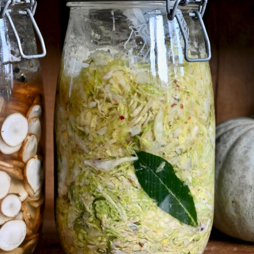 Sauerkraut: fermented winter cabbage.
